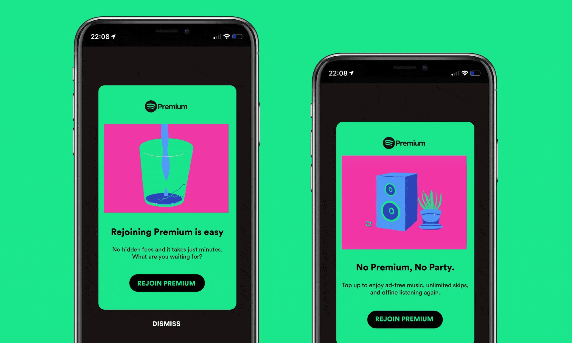 Working in a team at Byte London, we were tasked with creating animations to accompany Spotify Premium's retention emails. For this, I concepted and illustrated a number of illustrations which were then handed over to be animated by other members of my team. This was an incredibly fun project to work on, and I loved seeing all the illustrations come to life.
